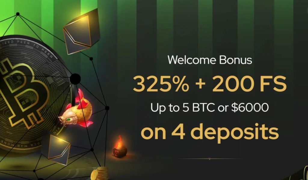 Trigger a stunning four-part welcome package of 325% up to 5 BTC and 200 FS with minimum deposits of 0.00016 BTC each.