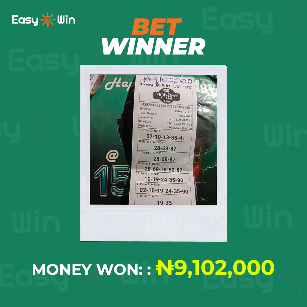 “I still can’t believe it! I was at home when I checked my EasyWin account and saw the ₦9.102 million win. What amazed me most was how fast the payout was, I received my money instantly. EasyWin Nigeria has truly changed my life,” Titilayo said.